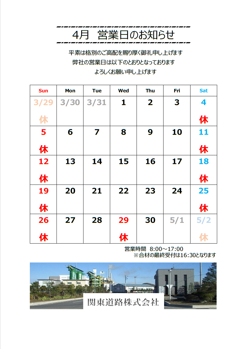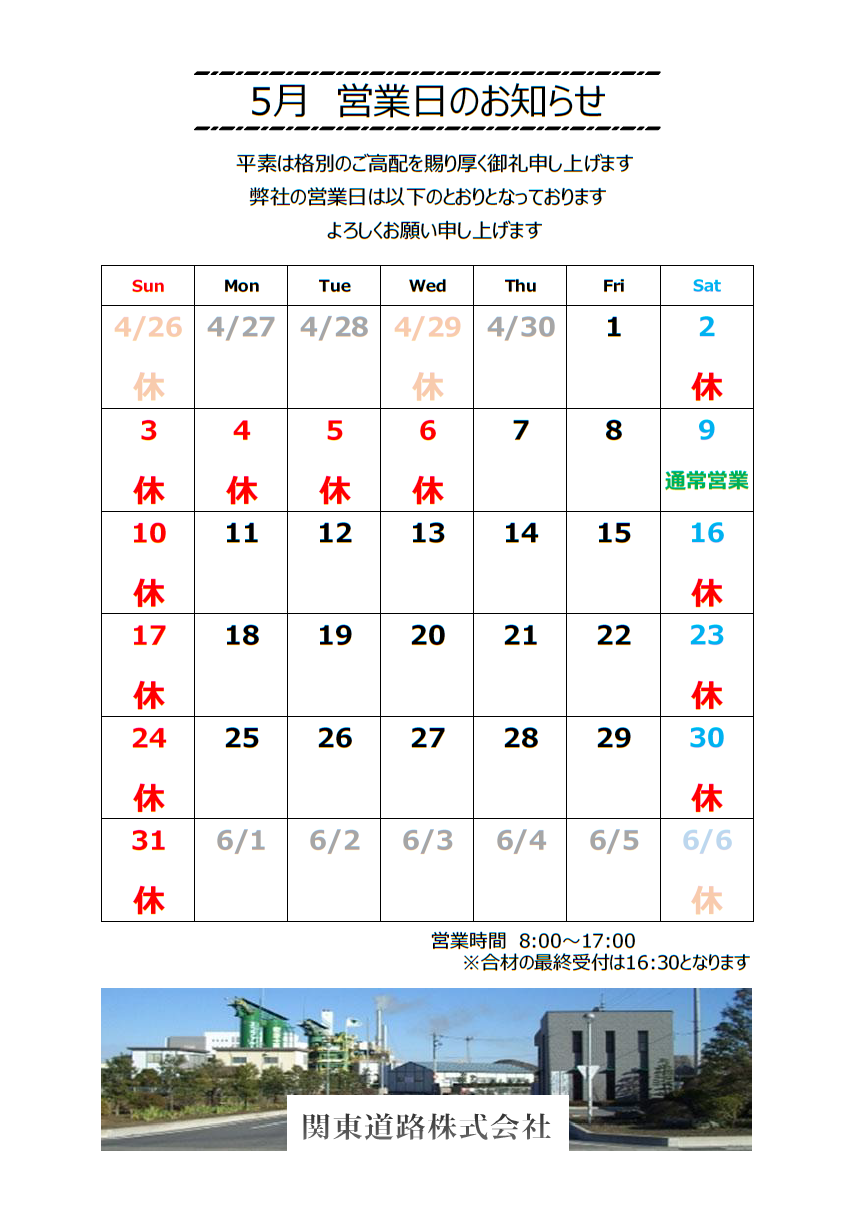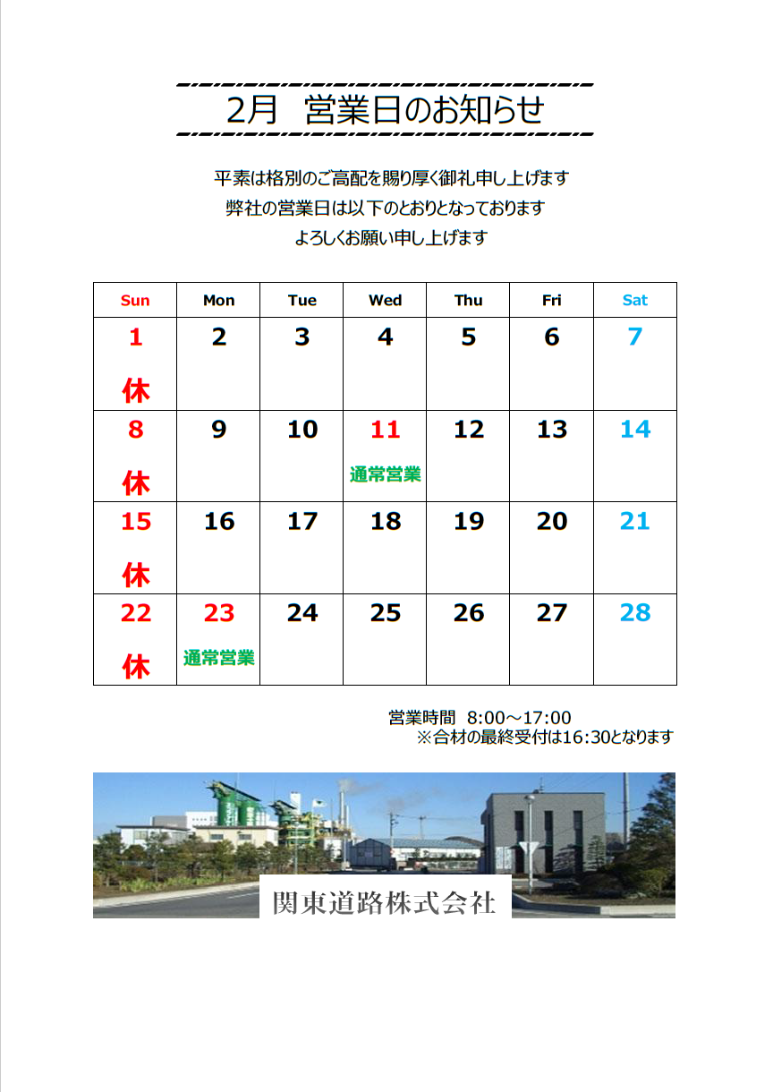 営業日カレンダー